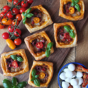 Sundried-Tomato-Pesto-and-Mozzarella-Tarts-with-Puff-Pastry